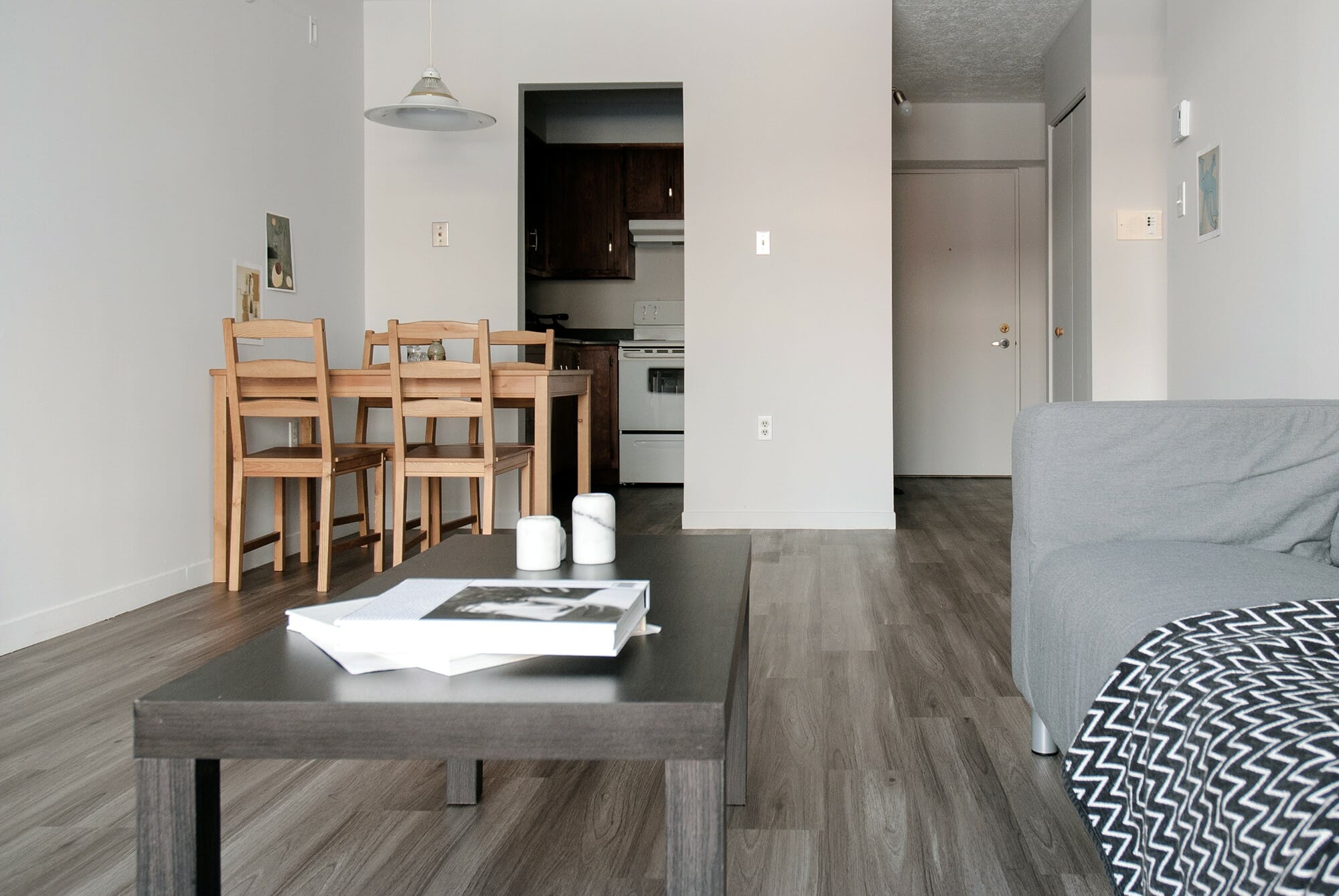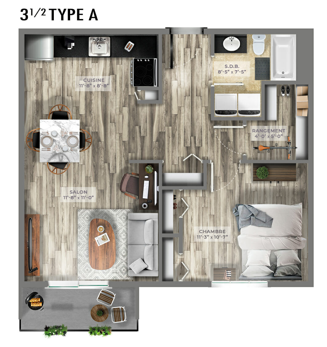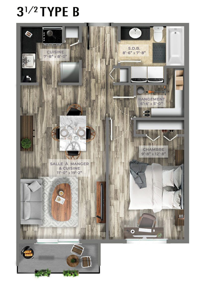 The fully renovated unit (non-renovated units also available) is located close to the Université de Sherbrooke’s Main Campus. It includes a large open space with a kitchen, dining room, and a large separate bedroom. Residents have access to all the services offered, including lounges, study rooms and all other common areas.